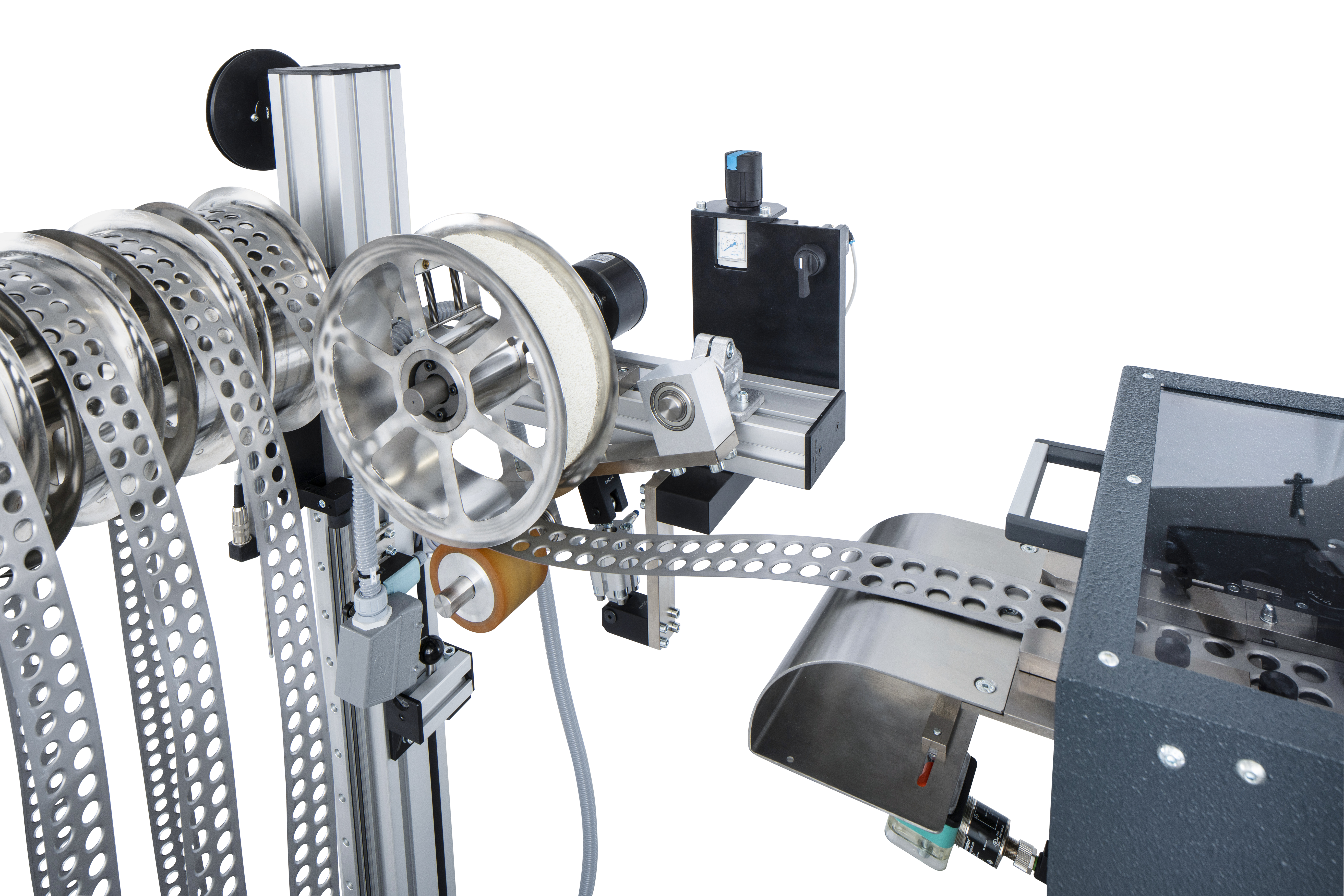 - Höhere Wickelgeschwindigkeiten über 13 m/min und unterbrechungsfreie Produktion durch Bandspeicher möglich